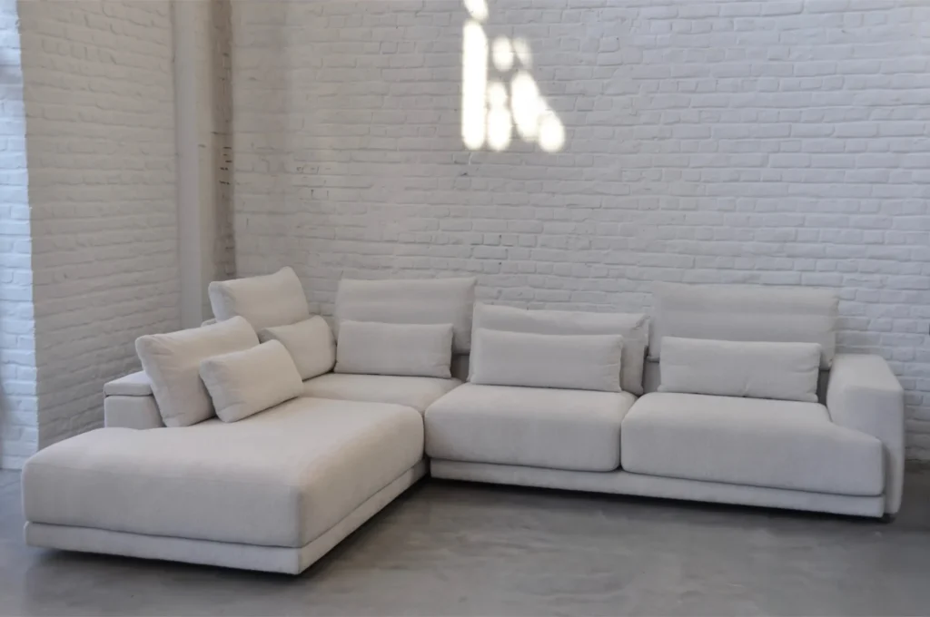 Le canapé Willow d’Olta se distingue par son élégance contemporaine et ses lignes sophistiquées, où la douceur visuelle rencontre une géométrie parfaitement maîtrisée. Dans cette composition L2Hz + 3,5z habillée du tissu Cottage 3715, Willow transforme le salon en un espace harmonieux, lumineux et minimaliste. Grâce à son système modulaire, il s’adapte à toutes les configurations et optimise l’espace tout en garantissant un confort exceptionnel. Véritable caméléon stylistique, il s’intègre aussi bien dans les intérieurs clairs que dans des ambiances plus sombres, apportant caractère, style et fonctionnalité.