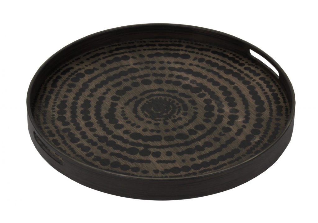 Plateau rond en bois Black of Peas avec fond en miroir peint de la marque Ethnicraft.