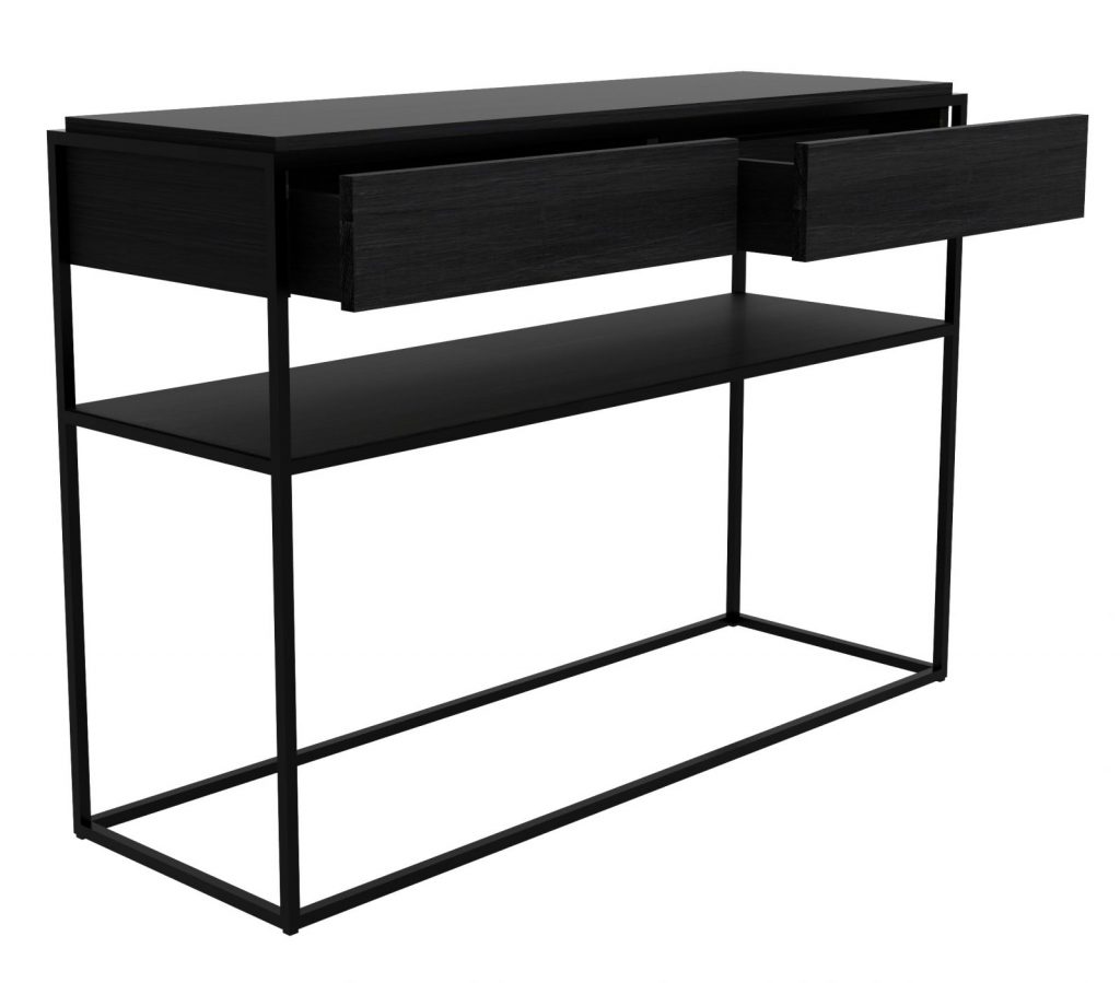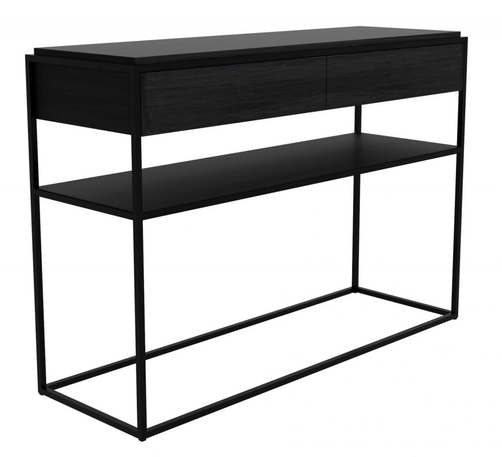 Console Monolit en chêne massif teinté en noir et structure métal noir de la marque Ethnicraft