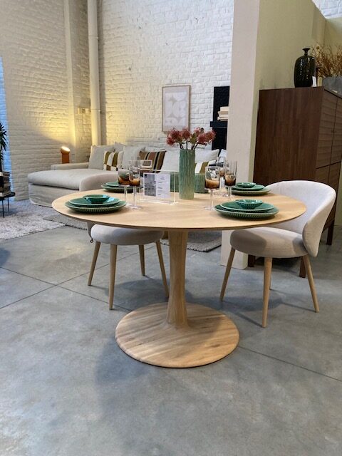 La table Torsion d’Ethnicraft allie légèreté visuelle et maîtrise artisanale. Réalisée en chêne massif, elle se distingue par son pied torsadé sculptural, véritable prouesse technique et esthétique. Son plateau finement travaillé révèle tout le savoir-faire d’Ethnicraft, mêlant modernité, élégance et naturel. Une pièce maîtresse qui habille la salle à manger d’une présence subtile et raffinée.
