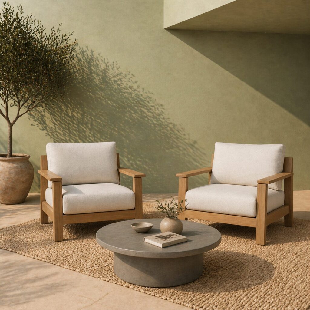 Fauteuil GUSTO de Solys Quatuor Design - Fauteuil outdoor en teck avec coussins ambre craie blanche