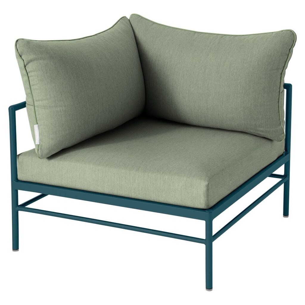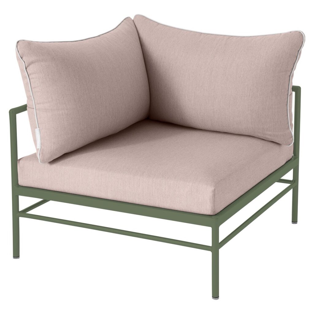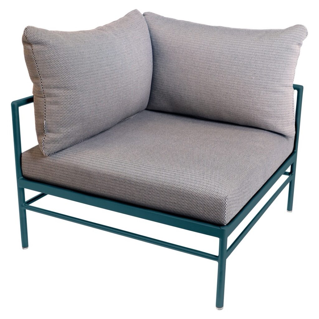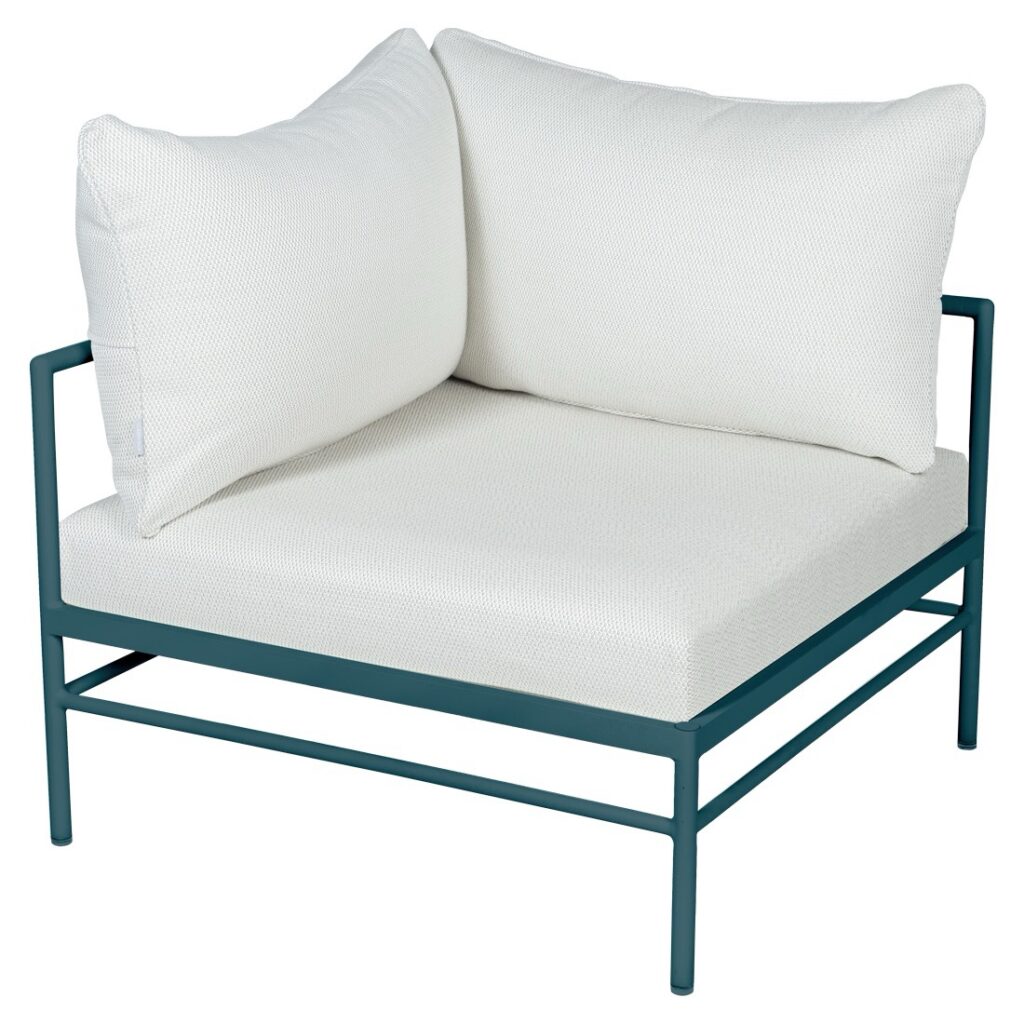 Le fauteuil d’angle Rivage de Fermob est un module essentiel pour créer un salon de jardin lounge modulable et convivial. Sa forme d’angle permet de structurer facilement votre espace extérieur.