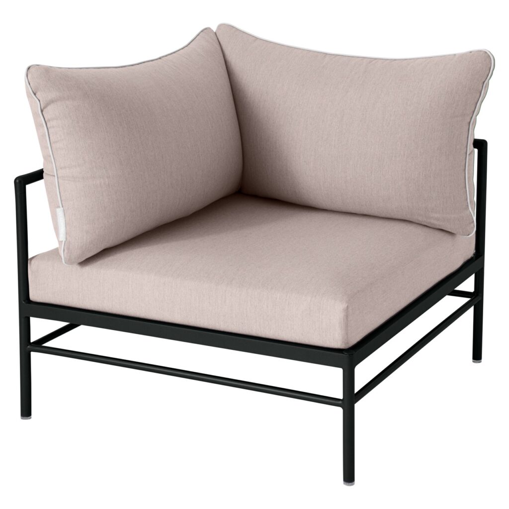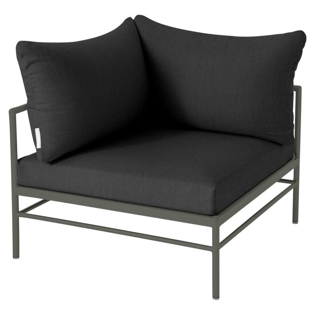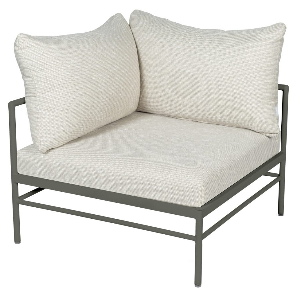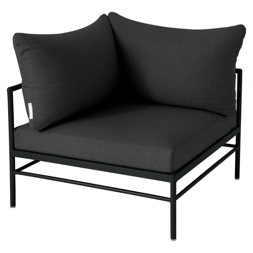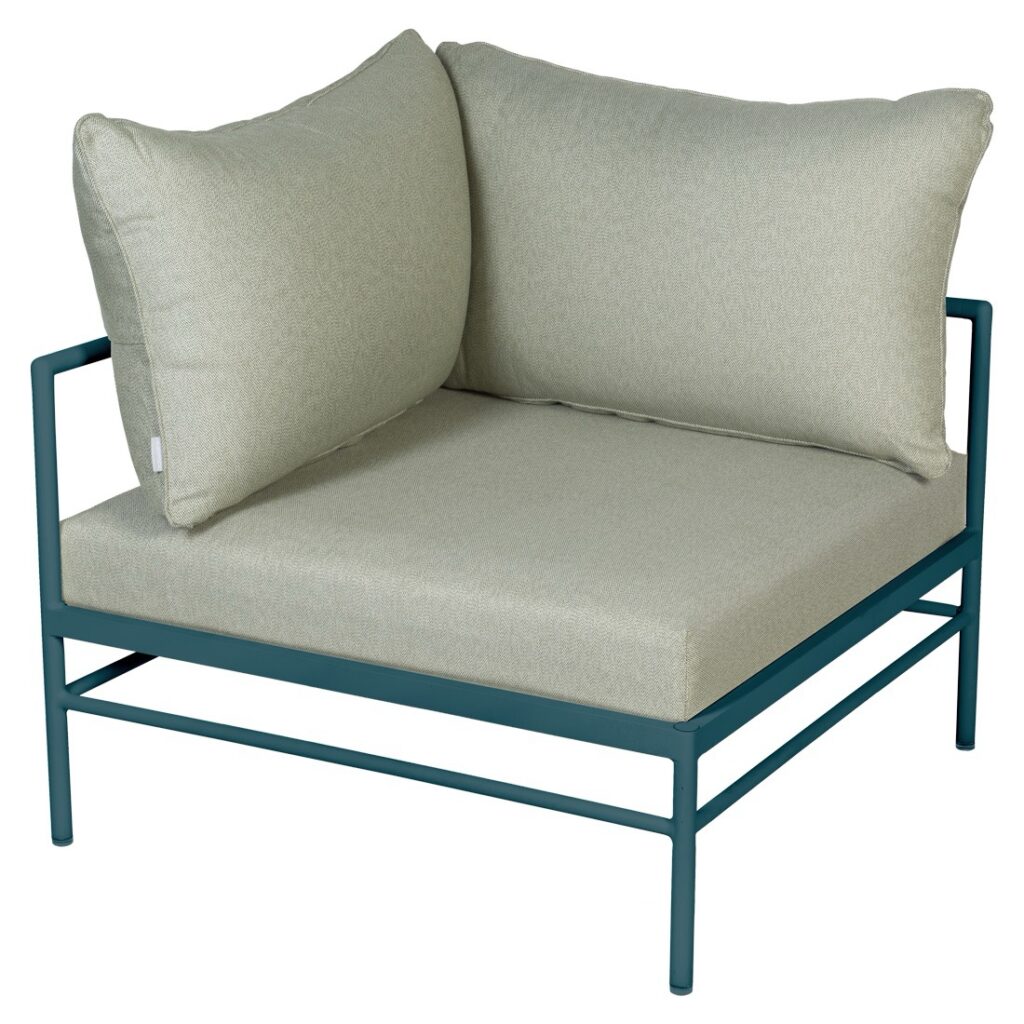 Le fauteuil d’angle Rivage de Fermob est un module essentiel pour créer un salon de jardin lounge modulable et convivial. Sa forme d’angle permet de structurer facilement votre espace extérieur.