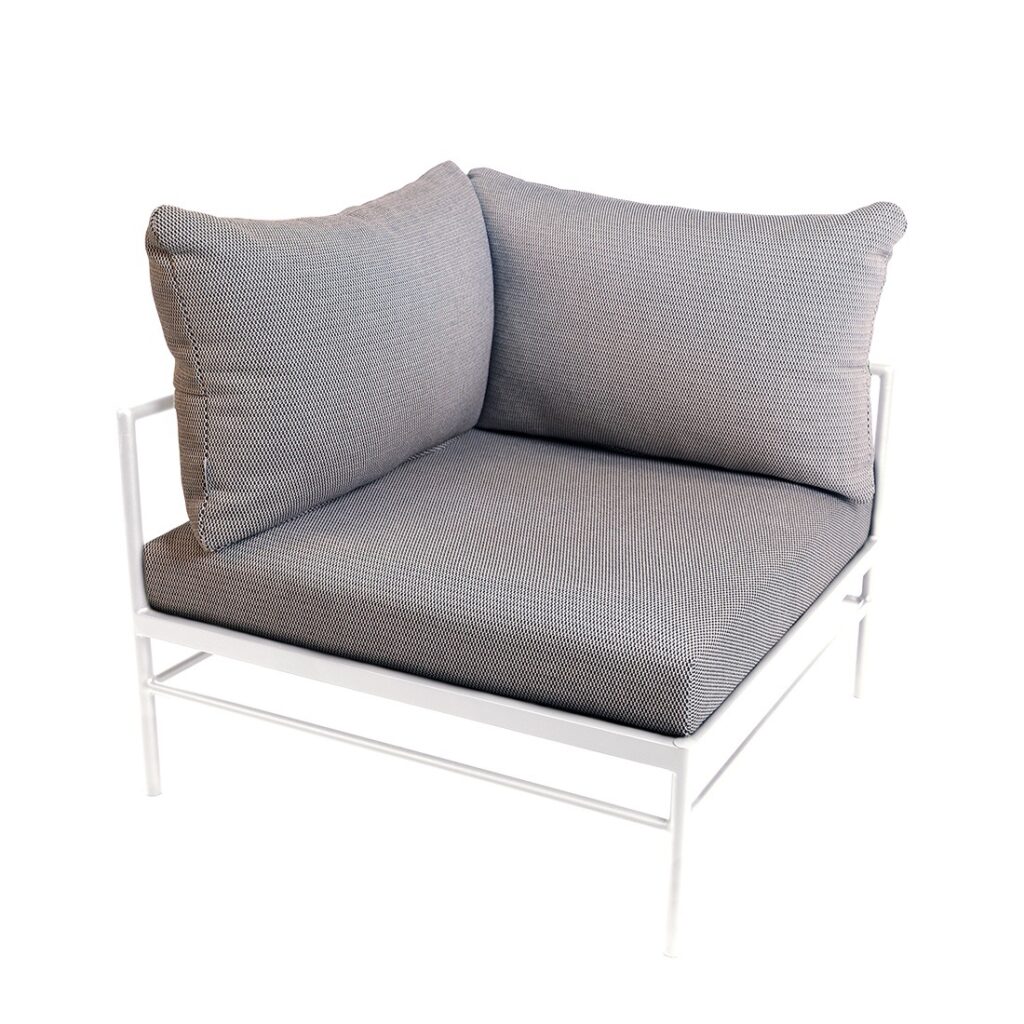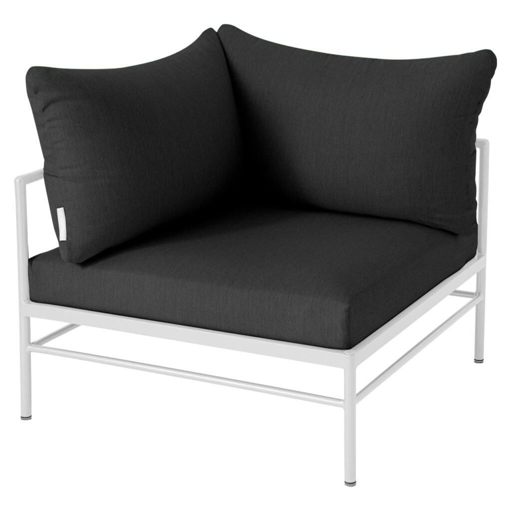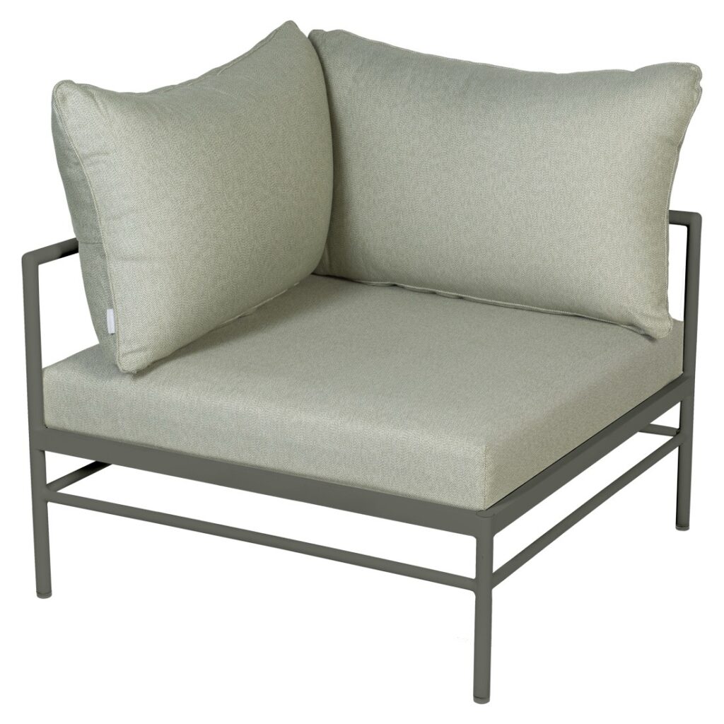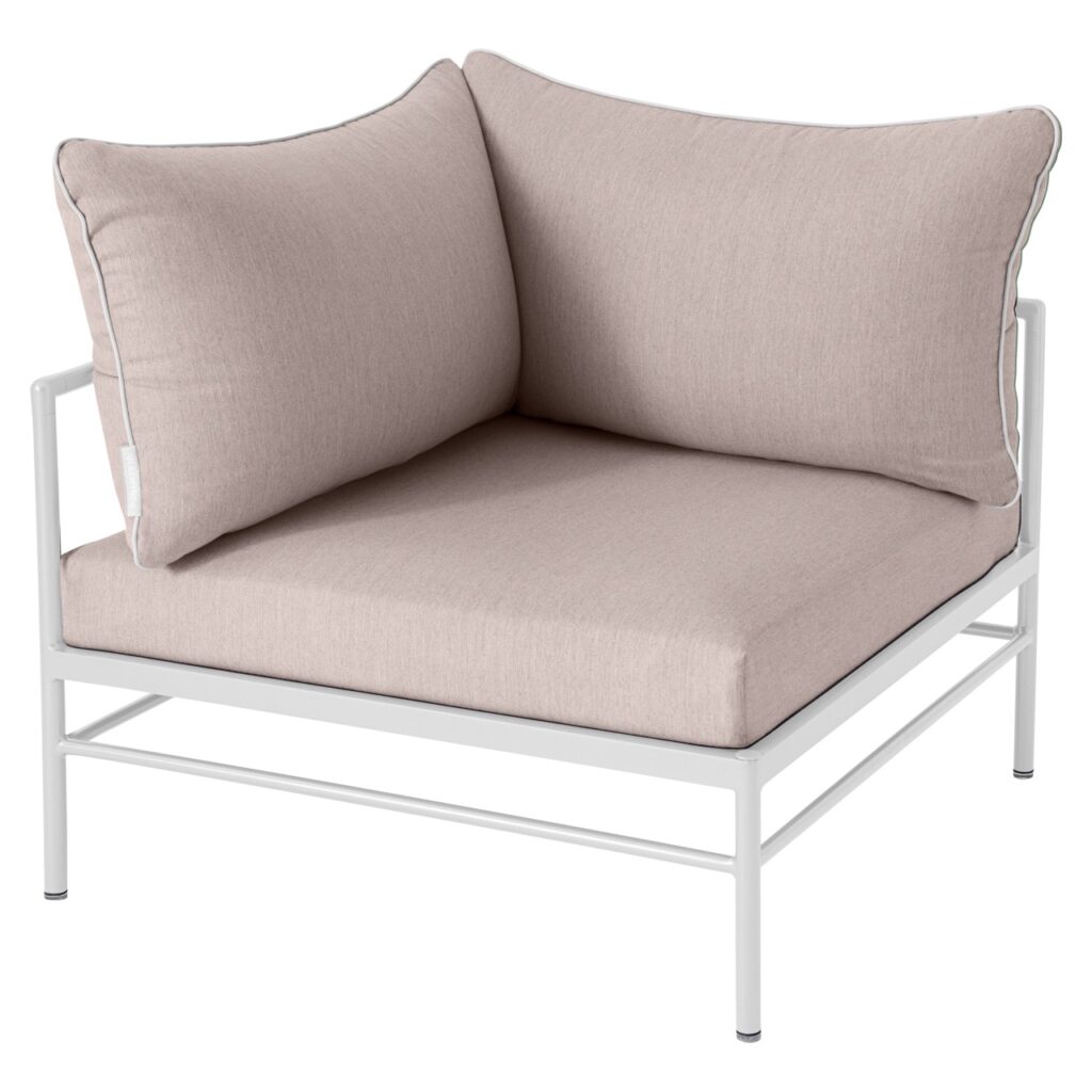 Le fauteuil d’angle Rivage de Fermob est un module essentiel pour créer un salon de jardin lounge modulable et convivial. Sa forme d’angle permet de structurer facilement votre espace extérieur.