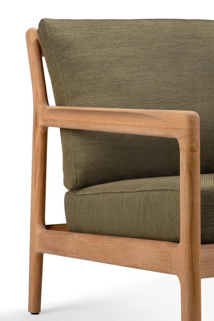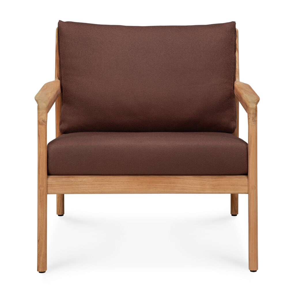 Fauteuil de jardin Jack en teck massif et coussin en tissu 100% polyprop de la marque Ethnicraft.