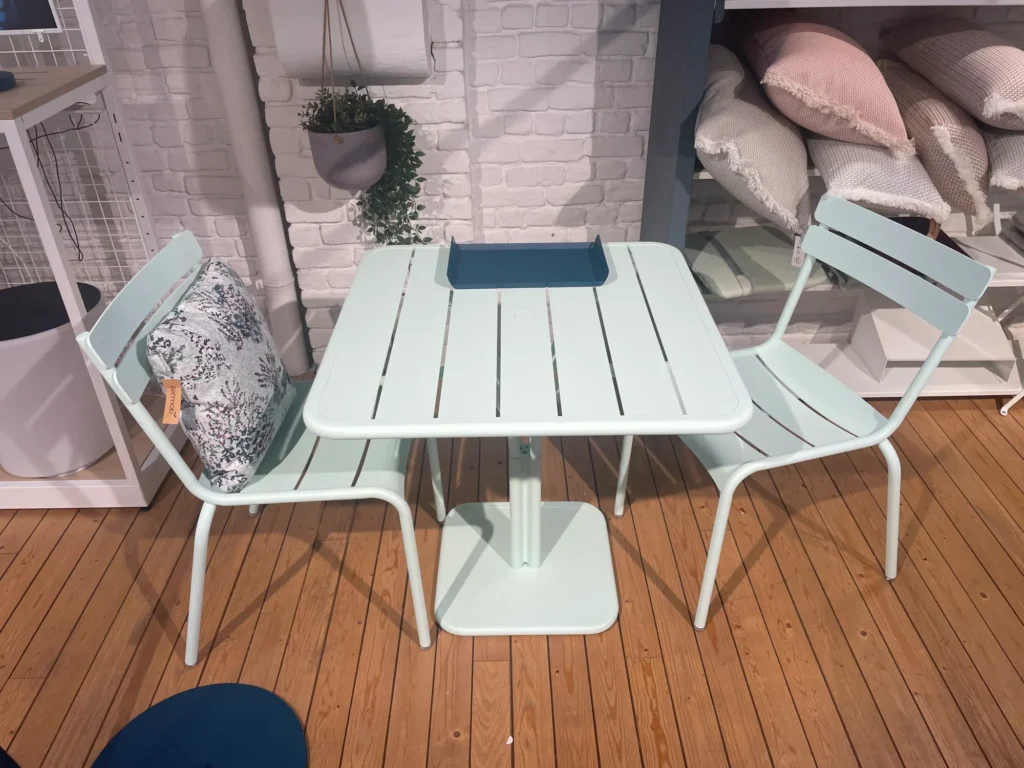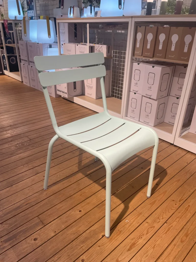 Marque Fermob Collection Luxembourg Matériau Aluminium thermolaqué Couleurs Menthe glaciale Hauteur d'assise 48.5 Empilable Poids 3,8 Convient en extérieur Pièces de la maison Jardin & terrasse Entretien