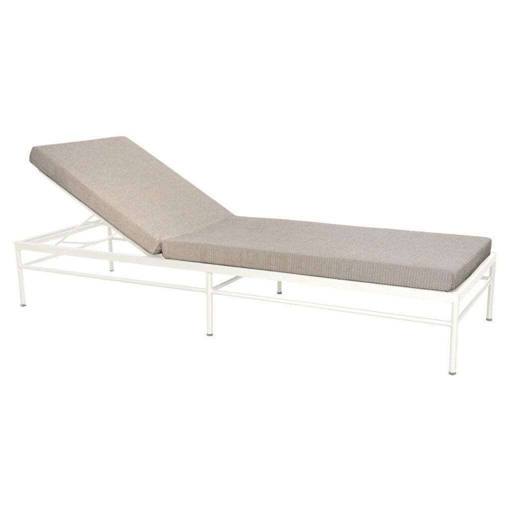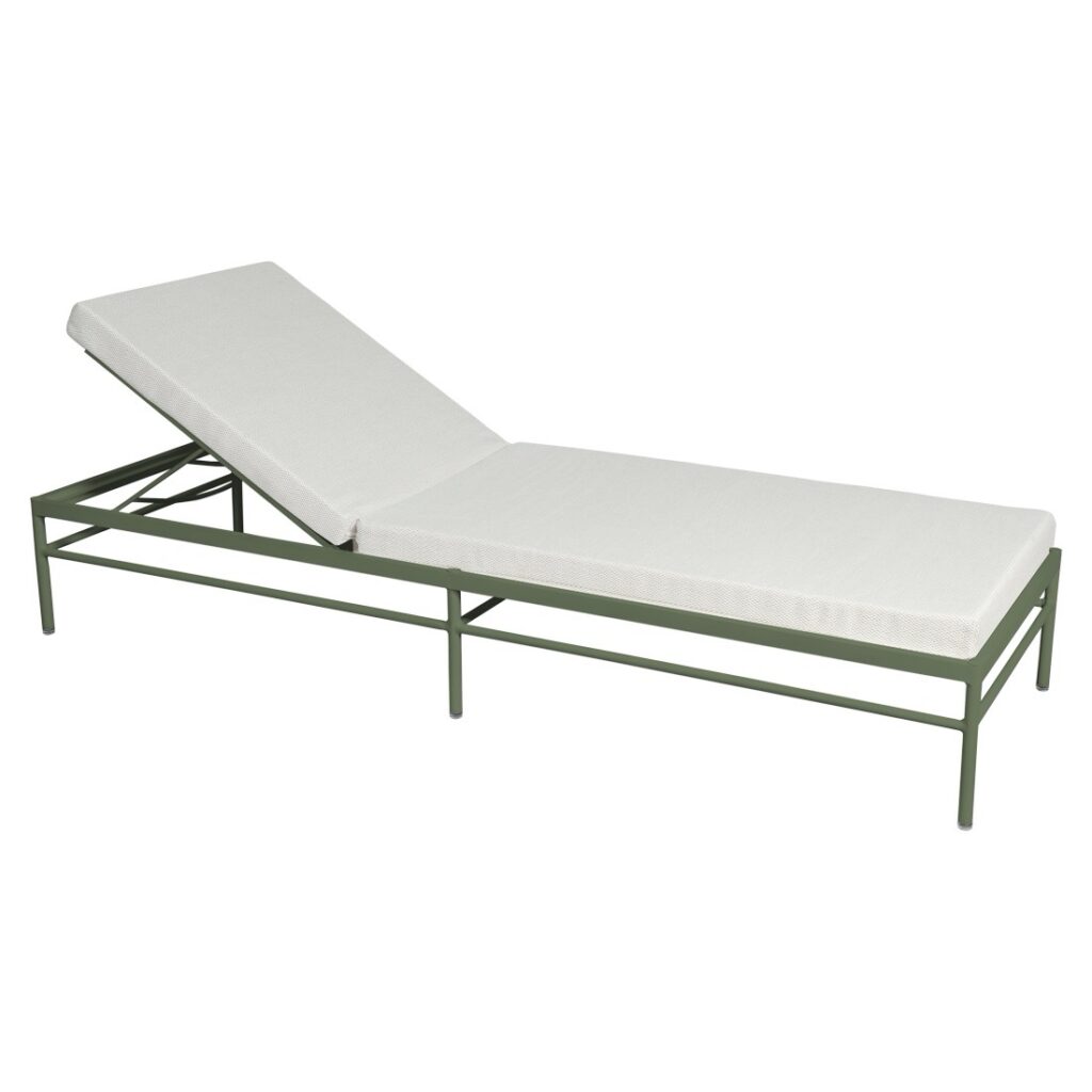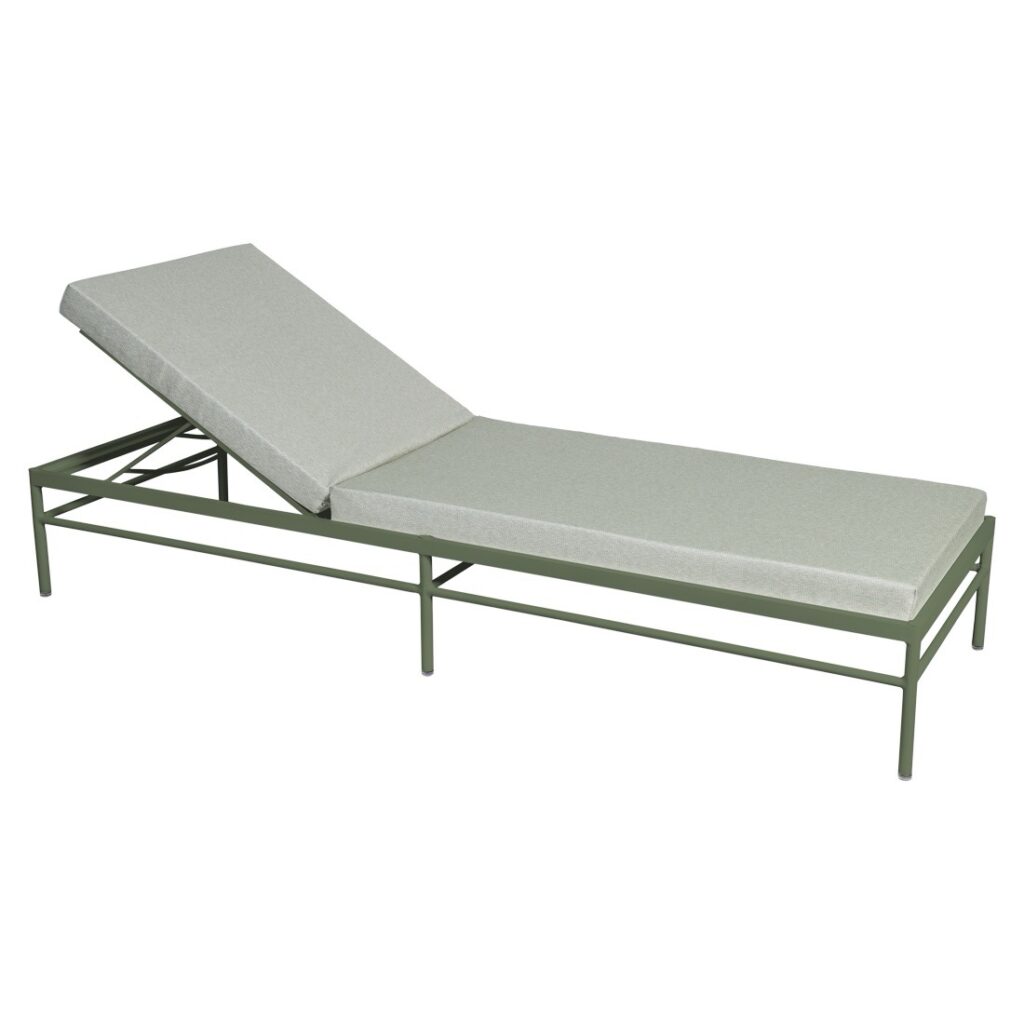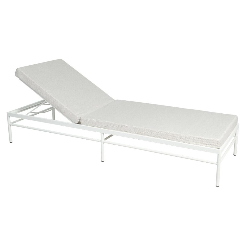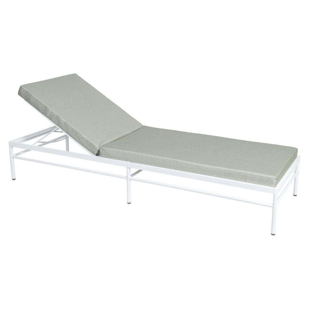 Sa structure en aluminium assure robustesse, légèreté et excellente résistance aux UV et aux intempéries, tandis que son matelas confortable inclus garantit un confort optimal. Le dossier est réglable en 4 positions, dont une totalement à plat, pour s’adapter à tous vos moments de relaxation.