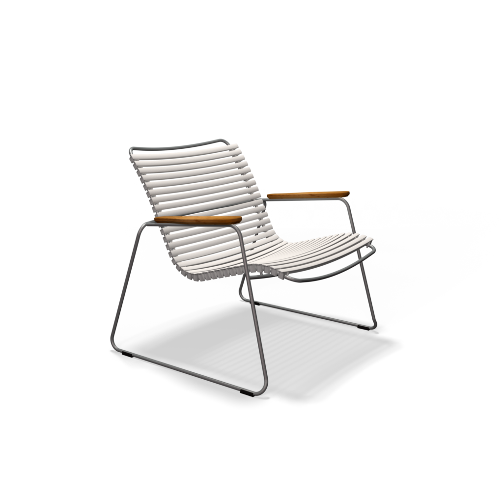 Met zijn lichte en moderne uitstraling past de CLICK Roomy lounge stoel perfect op een hedendaags terras, in de tuin of in een professionele lounge omgeving. Dankzij de verwisselbare lamellen kun je bovendien spelen met kleuren en je buitenruimte personaliseren.