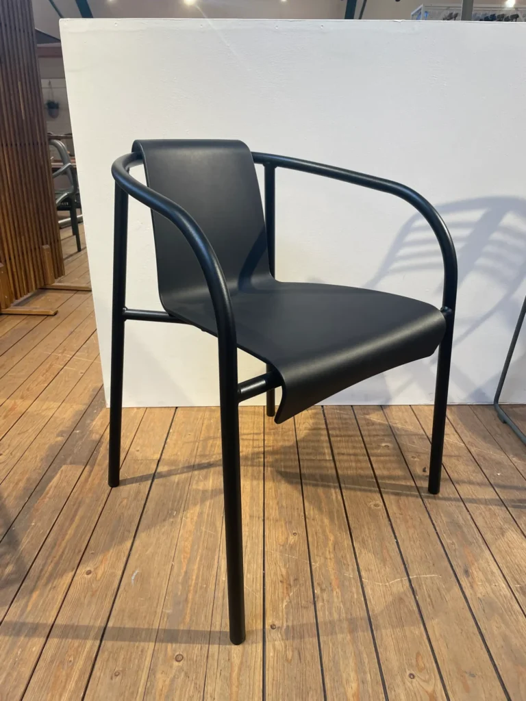 Geef uw buitenruimte een vleugje duurzaam design met de Nami-fauteuil van Houe. De elegante rondingen zijn geïnspireerd op de natuur en doen denken aan een golf die op het strand breekt. De fauteuil wordt geproduceerd in Denemarken, is EU Ecolabel-gecertificeerd en gemaakt van 97% gerecycled plastic afkomstig uit Deense huishoudens. De ergonomische zitting rust op een gepoedercoat stalen frame voor optimale weerbestendigheid. Verkrijgbaar in zwart, past hij harmonieus in elke buitenruimte.
