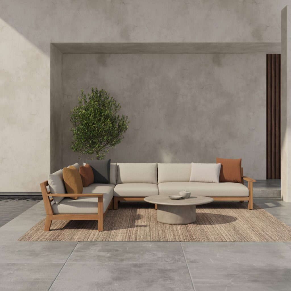 Met weerbestendige materialen en een stevige constructie is deze sofa geschikt voor langdurig gebruik.