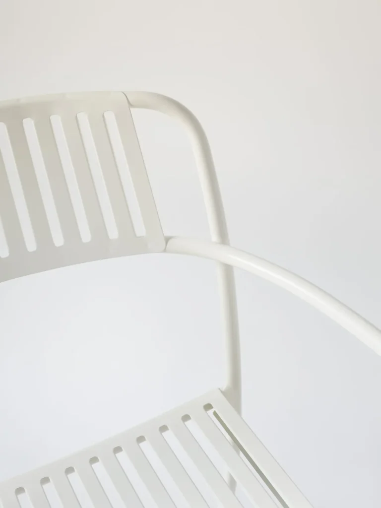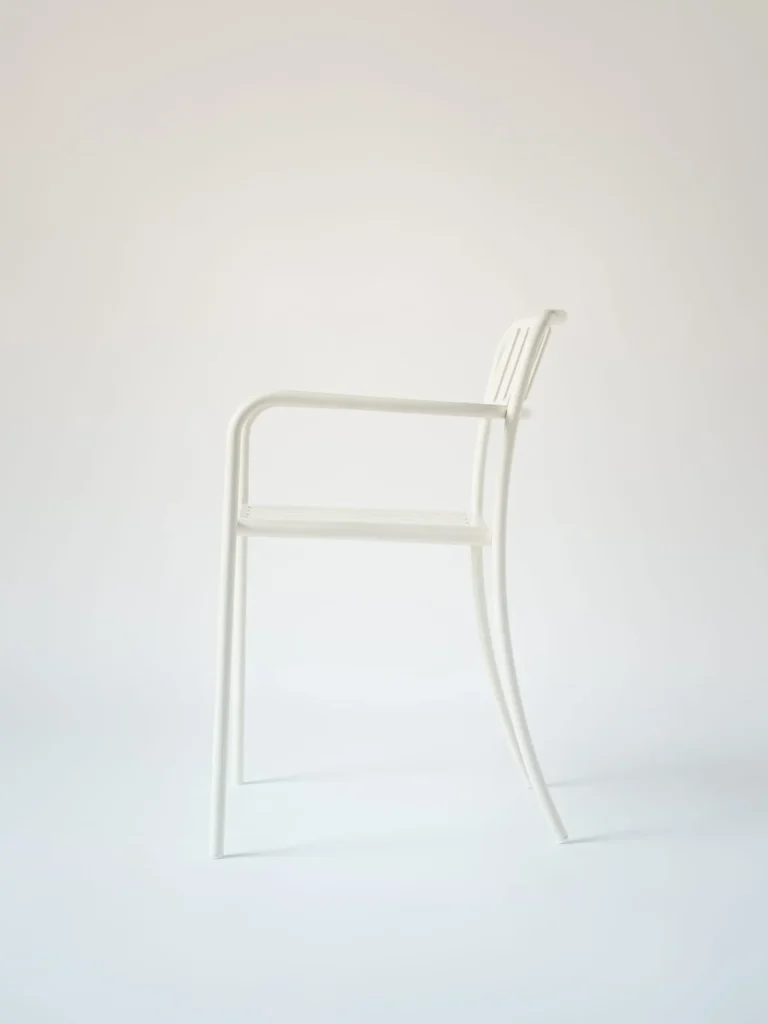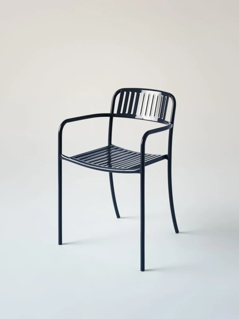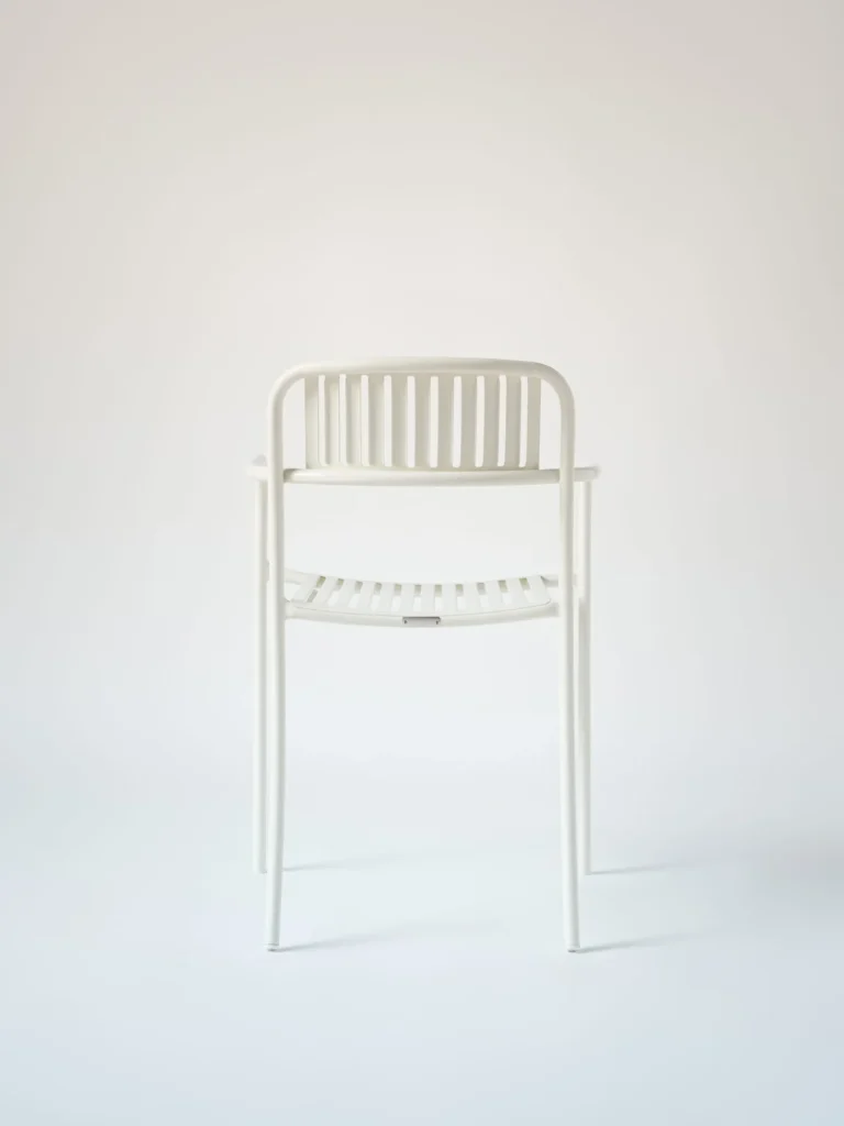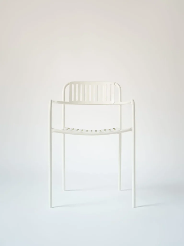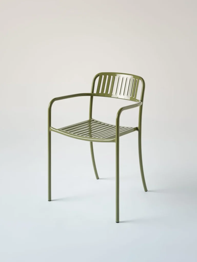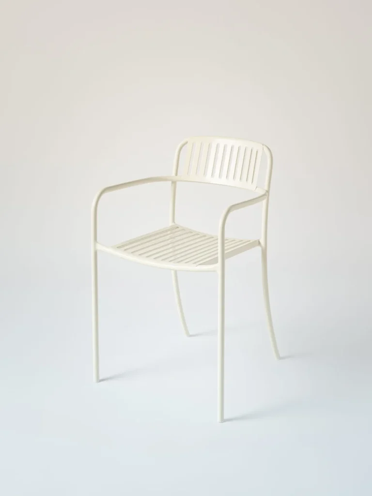 De Patio eetfauteuil, ontworpen door Pauline Deltour in 2019, combineert een eigentijdse uitstraling met een lichte en verfijnde vormgeving.