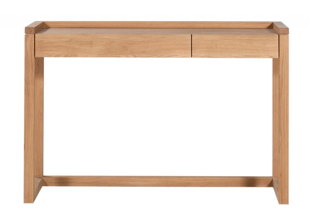 Zijn compacte afmetingen maken er het ideale bureau voor kleine ruimtes van. De lijnen zijn strak en de twee lades vormen een optimale opbergruimte voor schrijfbenodigdheden of papieren. Kan ook dienstdoen als console.